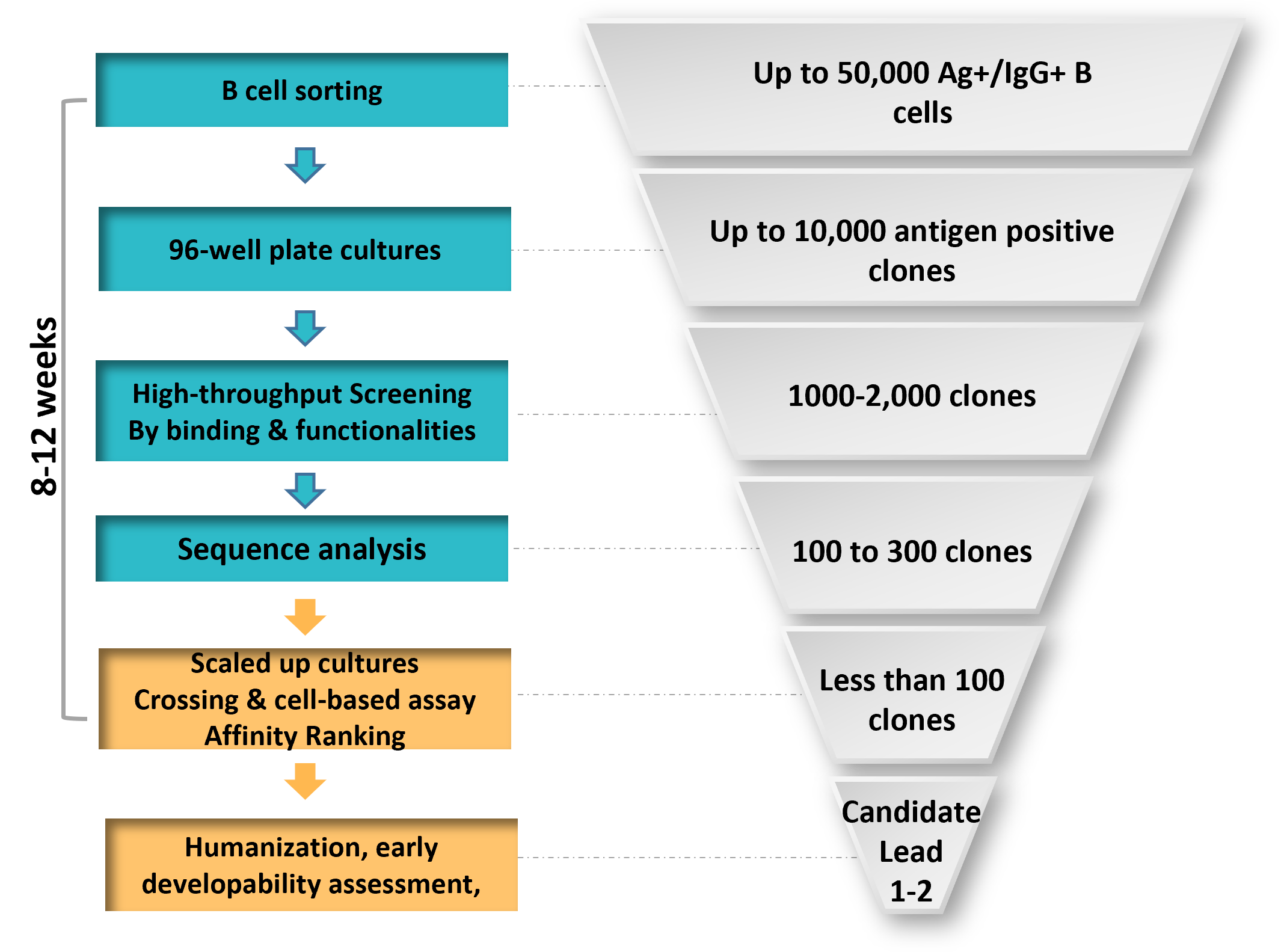 高保真 记忆B细胞、浆细胞筛选,保证B细胞重轻链天然配对